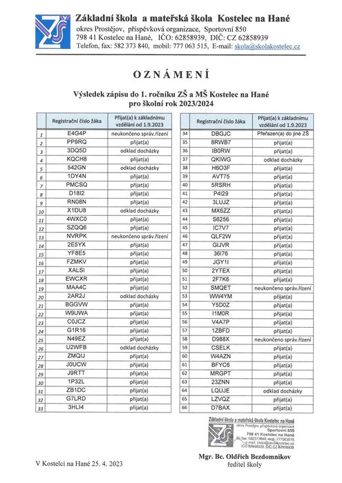 Úvod > Základní škola > Aktuality ZŠ > Přehled zápisu do ZŠ 2023