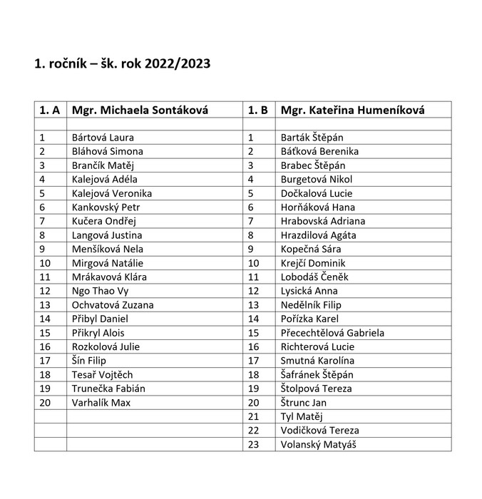 Úvod > Základní škola > Aktuality ZŠ > Rozdělení 1. tříd v příštím školním roce